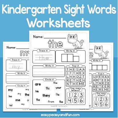 Kindergarten Sight Word Worksheets. These worksheets provide the perfect exercise to assist a child in developing a sight word vocabulary. Begin with two sight words,e.g., I & am. Gradually introduce new sight words. The number of words to teach a child will depend upon the child so begin with two sight words and increase if necessary.