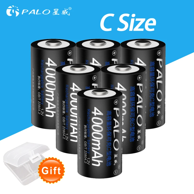 Palo 6 Pcs C Ukuran Ni-mh Baterai Isi Ulang 4000 M Ah C Baterai Ukuran C 1.2 V Baterai untuk Kompor Gas radio Senter Lampu LED