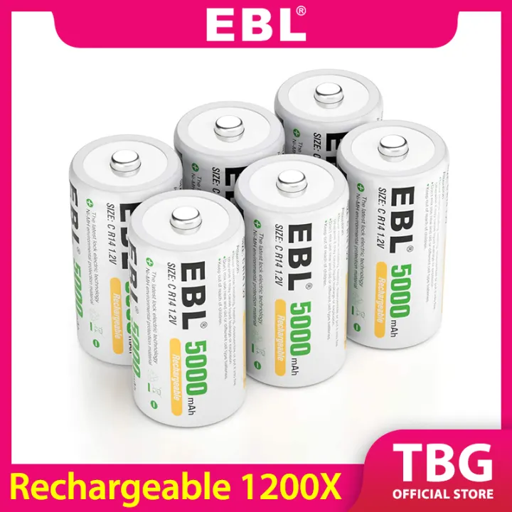 EBL C Cell 1.2V 5000mAh Ni-MH D Size (6 pcs/pack) Rechargeable Battery with ProCyco Technology (Upgraded Cells 1200x Reusable-Cycle) [FREE Casing] ...