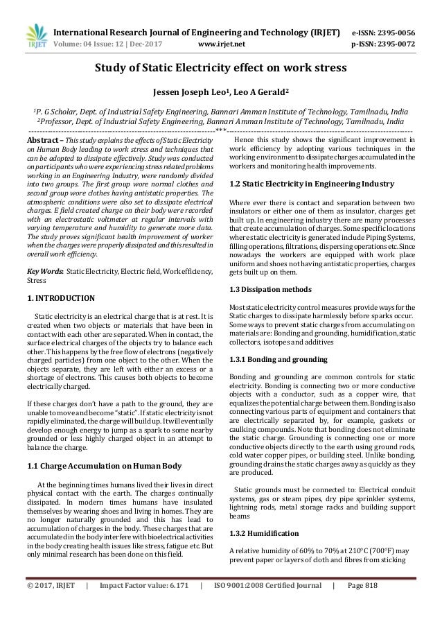Static electricity The human body is under an exchange of electric power difference between the atmosphere and earth, this is, it is constantly affected by electric charges ...