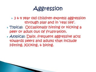 The Hyperaggressive Young Child | MDedge Pediatrics For a child older than 3 years to be aggressive enough for parents or care providers to call for help is a significant problem which, if left unaddressed Age 3 is a pivotal age, as aggression is normal and even expected before then. All infants bite once they cut teeth. Kids also experiment with their mouths...