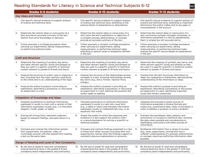 Cutest EVER Common Core SCIENCE STANDARDS Posters for ... Do YOUR kids know the Reading and Writing "Secrets?" From the Secret Stories®—Cracking the Reading and Writing Code with the Brain in Mind! Free!!! "Cutest-EVER" Common Core SCIENCE Standards Posters for FIRST GRADE! Click Links Below for "Made-to-Match' Common Core Poster Sets! 1st Grade Social Studies Common Core Poster Set 1st Grade "Original" Literacy & Math Common Core Poster Set 1st ... Science & Technical Subjects | Common Core State Standards ... Grade 9-10. Grade 11-12. Language Progressive Skills. Standard 10: Range, Quality, & Complexity. Measuring Text Complexity: Three Factors. Range of Text Types for K-5. Texts Illustrating the Complexity, Quality, & Range of Student Reading K-5. Staying on Topic Within a Grade & Across Grades. Range of Text Types for 6-12.