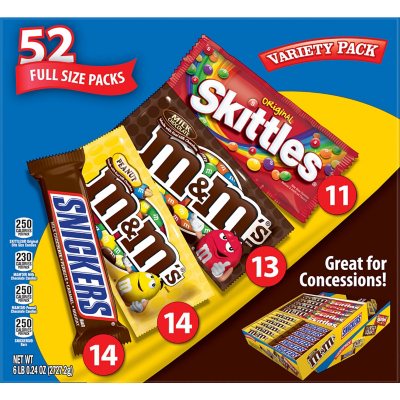 Mars M&M's, Snickers & Skittles Fun Size Candy Assortment ... Mars M&M's, Snickers & Skittles Fun Size Candy Assortment 29.82 oz, 55 ct $11.31 ($0.38/oz) Product description MARS Chocolate Favorites & More Candy is both fun and delicious with something for everyone to enjoy. Each candy is individually wrapped for easy sharing.