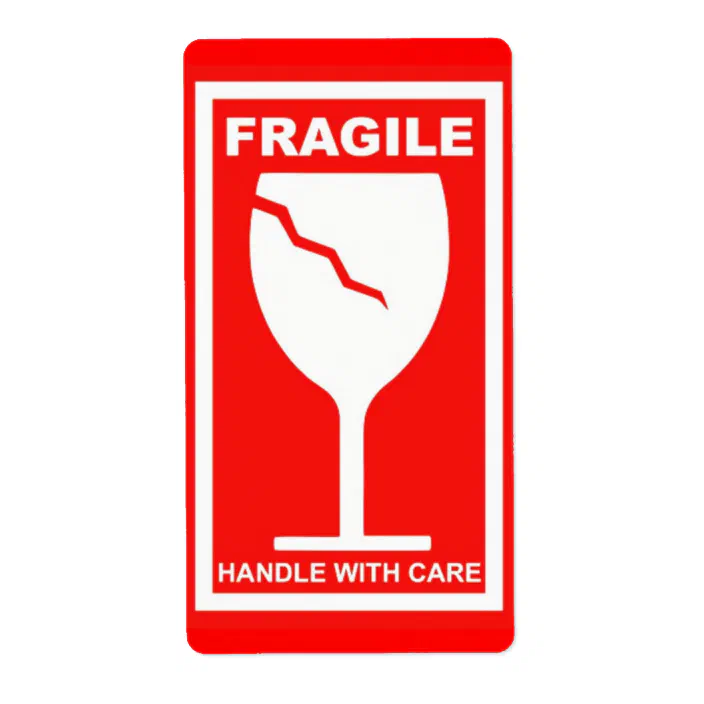 Avery "Fragile Handle with Care" Shipping Labels, Black ... Fragile Handle with Care labels. Permanent adhesive ensures that the label will stay secure through the mail. Labels measure 3"H x 5"W. Bright red neon labels help identify and protect fragile items. Guaranteed to stay secure on uncoated boxes and envelopes. 40 shipping labels per pack. Ad feedback.
