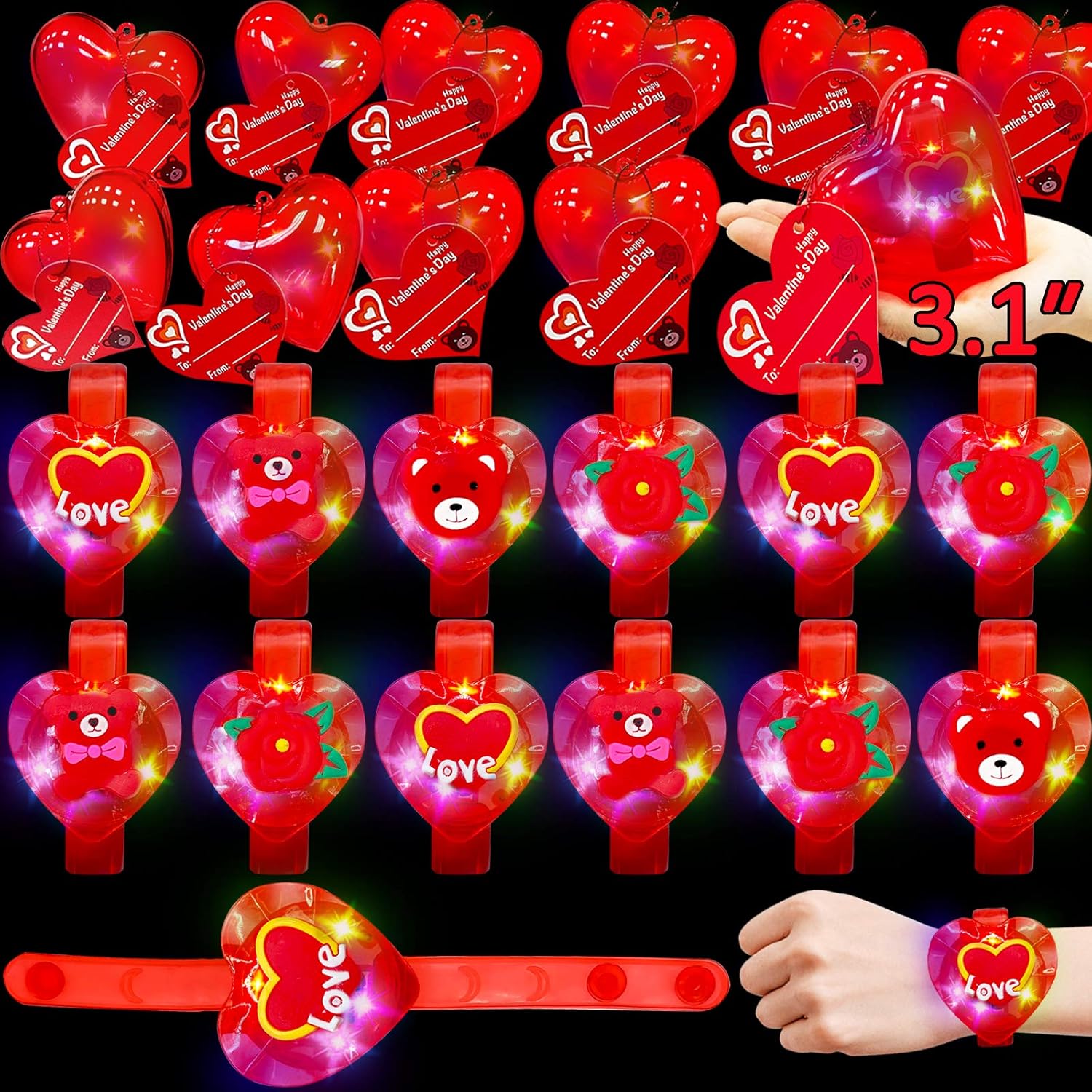 112 Pcs Kids Valentines Party Favors Toys 28 Pack Glow Rings with Filled Hearts and Valentine Cards for School Classroom Class Gift Exchange Game ...