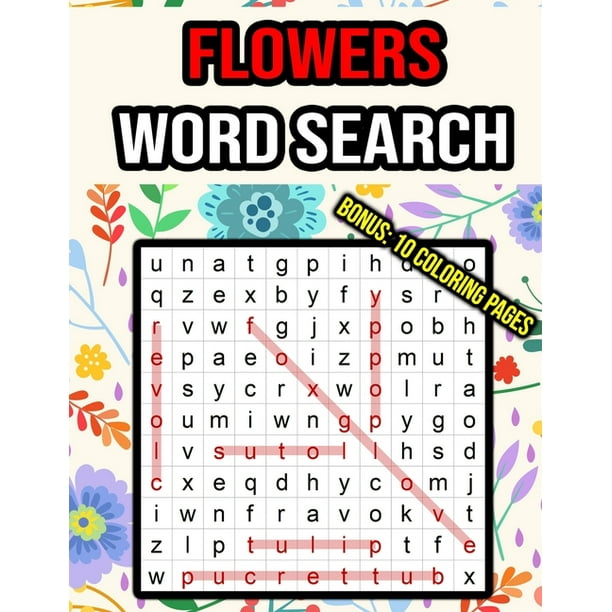 Flowers Word Search : Bonus: 10 Coloring Pages - Plant, Flower Lovers Word Search Puzzle Book for Women, Girls, Kids, Children, Adults, - with Flower ...