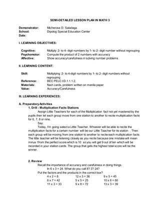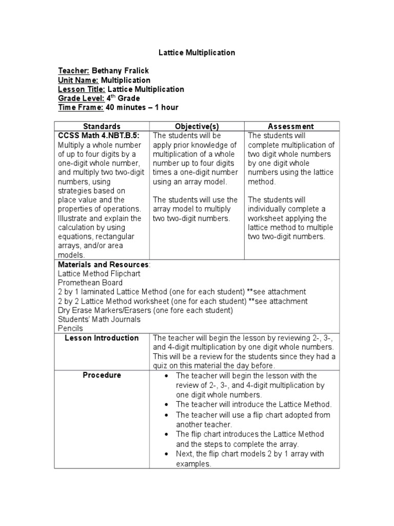 Lesson plan grade 4 Lesson plan. Unit of a long term plan: Lifestyle. School: № 372. Date: 29.01.2018. Teacher name: Taskynbayeva G. CLASS: 4. Number present: Absent: Lesson title. Free time. Learning objectives(s) that this lesson is contributing to (link to the Subject programme). Grade 4 multiplication worksheets Many 4th grade children still need to practice basic multiplication tables. Worksheets for those are not on this page but in this link as that is a focus topic for grade 3. Below you will find the various worksheet types both in html and PDF format. They are randomly generated so unique each time. Multiplying Whole Numbers Lesson Plan, Multiplication, Money... Teaching Multiplication Whole Numbers Lesson Plan Seminar - Rules professional guide lesson - High School Student Elementary Secondary Education Adults Special Education Teens Teenagers Free Instruct Theme Unit Middle School Young Adults Classroom Review Graders - 1st 2nd 3rd 4th 5th...