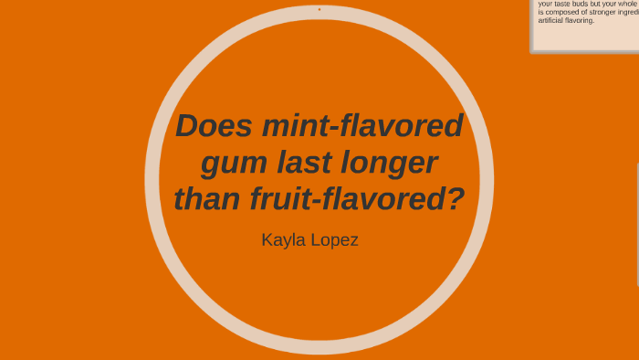 Question: Which Gum Flavor Last The Longest Science ... The results show that 5 gum's flavor lasts the longest. The average time for 5 gum was 79 minutes and 2 seconds. The other averages were, Stride with 62 minutes and 8 seconds, Trident with 49 minutes 50 seconds, Orbit with 58 minutes and 42 seconds, and Extra was 45 minutes. Why does gum lose its flavor so fast?