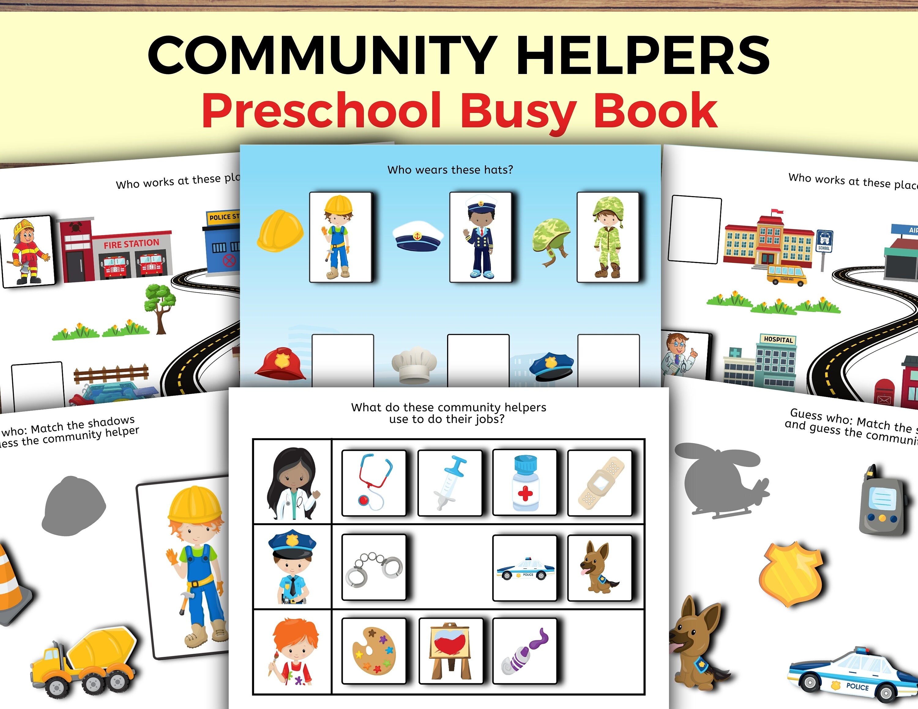 The 5 Best PRINTABLES for COMMUNITY HELPERS Preschool Theme 1. COMMUNITY HELPERS PRINTABLES: "VET CLINIC" BY CONFETTI CRATE 2. COMMUNITY HELPERS PRINTABLES: "HELPER HATS" BY TOT SCHOOLING 3. COMMUNITY HELPERS PRINTABLES: "WORDWALL CARDS" BY PRESCHOOL MOM 4. COMMUNITY HELPERS PRINTABLES: "SPIN THE WORKERS" BY KINDERARTEN WORKSHEETS AND GAMES 5. COMMUNITY HELPERS PRINTABLES: "I AM…