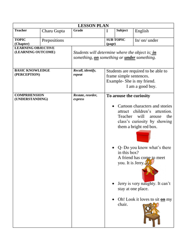 Lesson plan for grade 1. [BEST] Math Lesson Plans 2022 | Mathematics Lesson Plan WebHello Friends, If you are searching for Best Collection of Math Lesson Plan for B.Ed, M.Ed, DE.L.ED, DED, BTC, NIOS, NCERT, CBSE, and middle, high school, secondary, the senior secondary, elementary school then you are in the right place. Here you will get all the Mathematics Lesson Plan for all the Grade and Classes i.e. 1st 2nd 3rd 4th 5th 6th 7th … Browse 1st Grade Math Lesson Plans | Education.com Utilize Education.com's comprehensive first grade math lesson plans to help your students master the basics of math. These lesson plans are designed with first graders in mind, with in depth instructions and interactive, attention grabbing material. In other words, these lesson plans will leave your students wanting to learn more! LESSON PLAN BOOKLET FOR GRADE 1 - LAC Reads activities which last for a longer period. By the beginning of the third term, all Grade 1 classes should have been exposed to and using the format outlined for Grades 2 and 3; that is, whole and small group activities. The format below gives suggestions for the development of a Literacy 1-2-3 lesson in Grade One. Literacy 1-2-3 in Term One Complete Detailed Lesson Plan DLP for Grade 1-6 All Subjects Web19.05.2020 · Here in this page you will able to download 1st Quarter K-12 Detailed Lesson Plan for Grades 1-6 in all Subjects, just click on the download links below. BONUS LESSON PLAN FOR KINDER FOR WHOLE YEAR. Kindergarten Lesson Plan Week 1-10 – DOWNLOAD; Kindergarten Lesson Plan Week 11-20 – DOWNLOAD; Kindergarten …