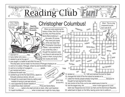Columbus Day Worksheets - Super Teacher Worksheets Printable worksheets and activities for Columbus Day. Includes a mini-book, puzzles, and more. Christopher Columbus Cut-Out Figure FREE Make a Chris Columbus with arms and legs that move! Cut out the body, arms, and legs, and attach with paper fasteners. View PDF Christopher Columbus Word Search (Easy)