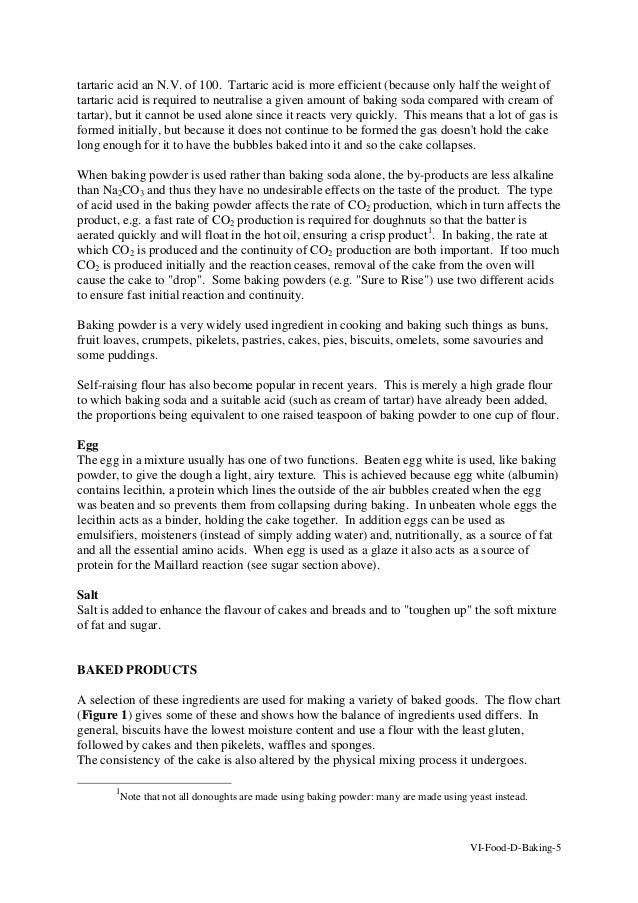 Chemistry of Breadmaking: An Introduction to the Science of Baking Chemistry of Breadmaking: An Introduction to the Science of Baking. Chemistry of Breadmaking: An Introduction to the Science of Baking. Watch on. 0:00 / 5:30. This video is intended to help people interested in chemistry learn something about baking, and those interested in baking learn a little bit about the science behind baking. Show More. The fundamental chemistry of baking cookies | 2020-04-10 | Snack Food ... Fundamental chemistry occurs when adding baking soda to the mixer. The sodium bicarbonate neutralizes the acidic ingredients (including high-fructose corn syrup, buttermilk, some flavors, etc.) producing carbon dioxide gas for cell formation. The Chemistry of Baking | PDF - Scribd Baking powder Baking powder is essentially a mixture of NaHCO3 and a weak solid acid or acid salt. When the mixture dissolves in water and the temperature is raised, CO2 is released according to the equation: NaHCO3 + H+ (from the acid) ! Na+ + H2O + CO2 The most common acids used are given in Table 1. The Science Behind Baking Ingredients - The Spruce Eats Commonly used baking fats include butter, shortening, coconut oil, and (less rarely these days) lard. Sugar Is Sweet and Helps Tenderize Sugar adds sweetness, as well as contributing to the product's browning. Sugar tenderizes a cake by preventing the gluten from forming. Sugar also holds moisture in the finished product.
