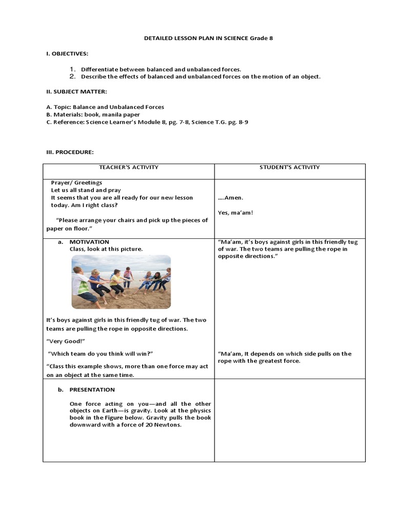 STEM Lesson Plans: Force and Motion - Learning to STEM Pushes, Pulls, and Muscles exercise designed by the Institute of Physics and aimed at 11- to 19-year-olds. Classroom Activities for Force & Motion (approximately 15 activities related to motion, forces, and Newton's Laws) Forces and Motion Unit Guide from UK Department for Children, Schools, and Family Worksheets Forces in Action ed.ted.com › lessons › joshua-manley-newton-s-3-lawsNewton’s 3 Laws, with a bicycle - Joshua Manley | TED-Ed Bicycle with thick tires, like mountain bikes, tend to go slower than bicycles with thin tires, like road bikes, when you apply the same amount of force, even if the bicycles are the same weight. This is due to the frictional force between the road and the tire. According the the conservation of energy theory, energy cannot be created or destroyed. › sciences › force-and-motion24 Elementary Force and Motion Experiments & Activities Get teaching with these force and motion experiments, activities and videos to use in the elementary classroom. This collection of force and motion activities and resources should help you cover the topics like texture, gravity, incline and simple machines. If you’re looking for helpful ideas and lesson plans – then this is the place to start! Force and Motion, Free PDF Download - Learn Bright The Force and Motion lesson plan includes three worksheets: an activity worksheet, a practice worksheet, and a homework assignment. Each one will help students solidify their grasp of the material they learned throughout the lesson. You can refer to the classroom procedure guidelines to know when to hand out each worksheet.