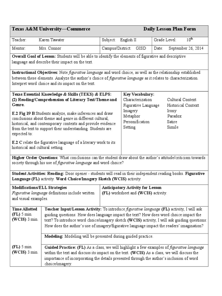 Figurative language lesson plans