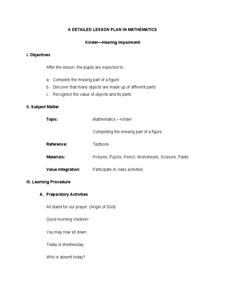 Part of a lesson plan. 3 Types Of Lesson Plan & The Five Parts Of A Lesson | Wiki Planning for a lesson is a teacher's detailed description of a lesson which is prepared before they start teaching. It covers the learning trajectory and course of action for each lesson taught and acts as a comprehensive daily guide for what students are going to learn. It also gives insight into how it will be taught. Telling Time Lesson Plan - WGU Assessment Plan Template Part I: Lesson ... Lesson Title Subject Grade/Level/Setting Telling Time Math 1st. Part II: Formative Assessment 1 General. Identify the assessment title. Describe when the assessment will take place within the Identifying Clocks lesson. This assessment will take place after the first two lessons of our unit of telling time on an analog clock. Parts Of A Lesson Plan - Fatherprada In a lesson plan, the nature of the subject topic always determines the presentation. It could be primarily theoretical, practical, or a combination. The purpose of a presentation is to ensure that the lesson objective is carried out without deviation. The presentation should clearly state the step-by-step teaching process. Evaluation 3 Types Of Lesson Plan & The Five Parts Of A Lesson | Wiki - Twinkl The 5 parts of a lesson plan differ across websites and even across primary schools as there are many variants, but the most common ways of dividing lessons are listed below: 1. Objectives This is possibly the most important out of the 5 parts of a lesson plan, they are the reason the lesson exists and should drive the activities.