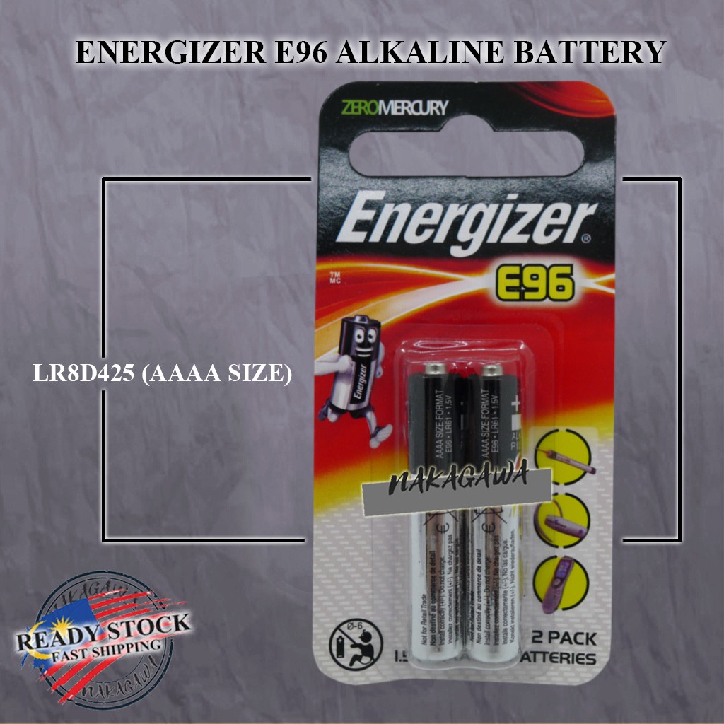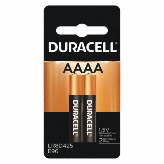 AAAA battery - Wikipedia The AAAA battery (usually read as quadruple-A) is 42.5 mm long and 8.3 mm in diameter. The alkaline cell weighs around 6.5 g and produces 1.5 V. This size battery is also classified as R8D425 ( IEC) [1] and 25 ( ANSI / NEDA ). The alkaline battery in this size is also known by Duracell type number MN2500 or MX2500 and Energizer type number E96 .