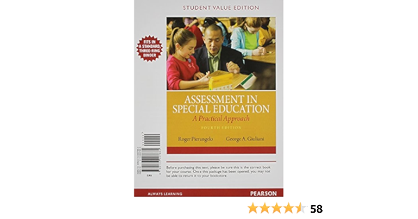 Assessment in Special Education, 5th Edition 5th edition - VitalSource Assessment in Special Education, 5th Edition: A Practical Approach 5th Edition is written by Roger A. Pierangelo; George A. Giuliani and published by ...