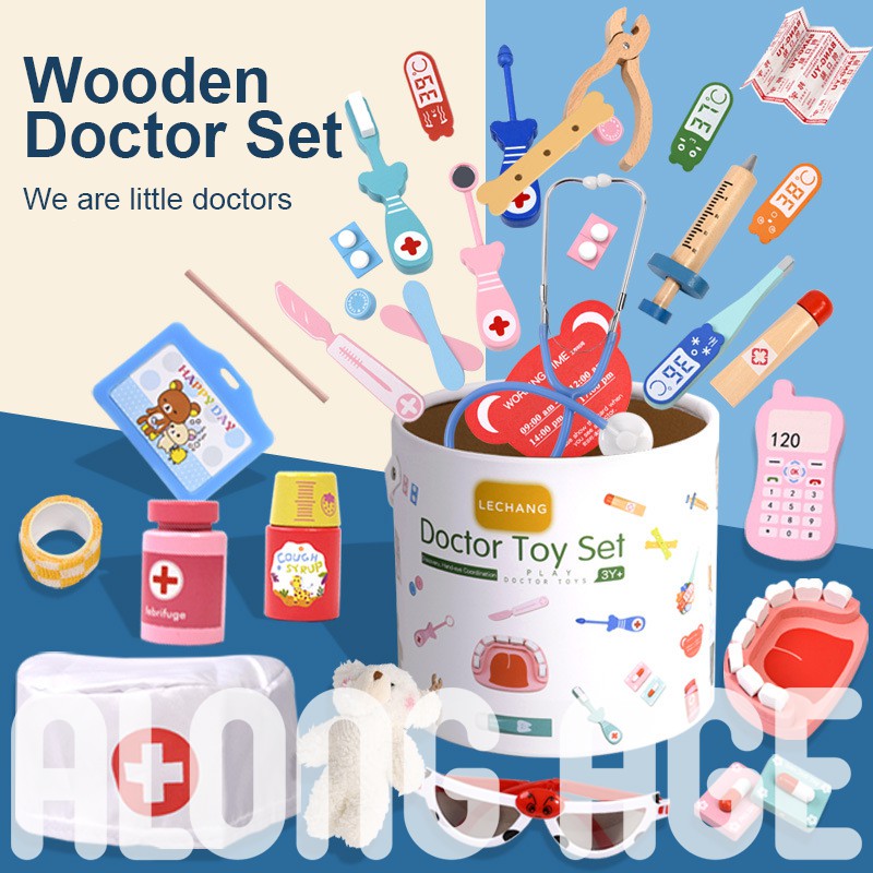 Wooden Pretend Play Doctor Dentist Kit Children Kid Roleplay Playset Toys Education Learning Activities Montessori