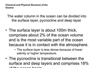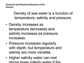 002 characteristics of ocean water - SlideShare Materials in Seawater –Oceans have an average salinity of 3.5% or 35 ppt ( ... Tropical and subtropical oceans are permanently layered with warm, less dense ...