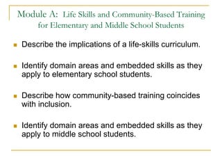 Life Skills Curriculum for Special Education Students - BrightHub Education Life Skills Curriculum Life skills refer to those skills that are required for daily living. They include self care skills, as well as other community related skills like social skills, environmental manipulation and shopping.