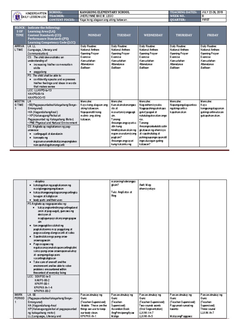 Kindergarten lesson plans pdf. › 2021/03/16 › kindergarten-lesson-plan-templateFREE Kindergarten Lesson Plan Template Word or Editable PDF Mar 16, 2021 · This free printable kindergarten lesson plan template Word format can be used to create your own lesson plans instead of starting from scratch. You can also download the lesson plan sheet as an editable PDF file. Word | PDF. If you want to change the lesson plan layout then use the Word format. images.template.net › Free-Kindergarten-Preschool-Lesson-Plan-PDF-DownloadPreschool and Pre-Kindergarten Lesson Plan Season: Spring Week:... Preschool and Pre-Kindergarten Lesson Plan Unit: Up in the Clouds Literacy Math Estimation Jar: Cotton Balls, Raindrop Shapes, or Star Cookie Cutters Letter of the Week: Q is for Quilt, Quick, and Quiet Creative Arts: A.M. Cotton Ball Creations obj: to create art using glue and cotton balls Crayon Resist Sky Drawings obj: to explore crayons and › resources › lesson-plansKindergarten Reading and Literature Lesson Plans - TeacherVision LESSON PLANS Summarizing: Cloudy With a Chance of Meatballs Download Add to Favorites LESSON PLANS Sequencing: The Hare and the Tortoise Download Add to Favorites LESSON PLANS Making Inferences, Animals Should Definitely Not Wear Clothing Download Add to Favorites EDITOR'S COLLECTIONS Summer Reading (Grades K-2) Download Add to Favorites › MDE › OAESUGGESTED INSTRUCTIONAL ROUTINES FOR TEACHING READING Kindergarten Page 5 (WHOLE-GROUP INSTRUCTION Build fluency throughout the lesson. Lesson should be tied to a thematic unit. Phonological Awareness (10-15 minutes or approximately 10% of instructional time) • Instruction should be interactive and explicit (Appendix A) • Focus on understanding of spoken words, syllables, and phonemes- RF.K.2